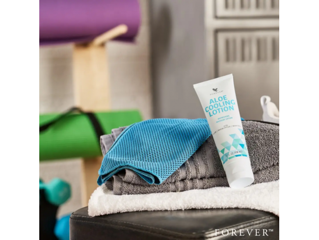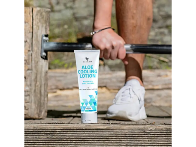 Алое Охолоджуючий Лосьйон, який має бути у кожній спортивній сумці або на тумбочці, містить освіжаючий ментол, евкаліптову олію, камфору, екстракт розмарину та метилсульфонілметан, або МСМ – органічну сполуку, яка є третім за поширеністю мінералом у нашому організмі.